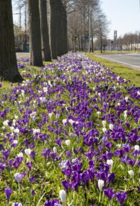 从春季到初夏的时节,在城市的道路旁和环岛种满春季球根花,绘制缤纷绚烂的城市“花名片”。巧妙组合在不同时间盛开的品种,可在四到五个月时间内持续点缀城市的各个角落,提升城市公共空间对人和动物的吸引力和宜居性。